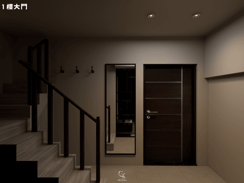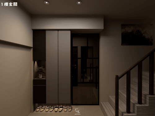 1.透天1樓部分鞋櫃使用懸空的設計讓視覺輕盈、方便清潔、底部可放常用鞋或拖鞋,並利於通風防臭。