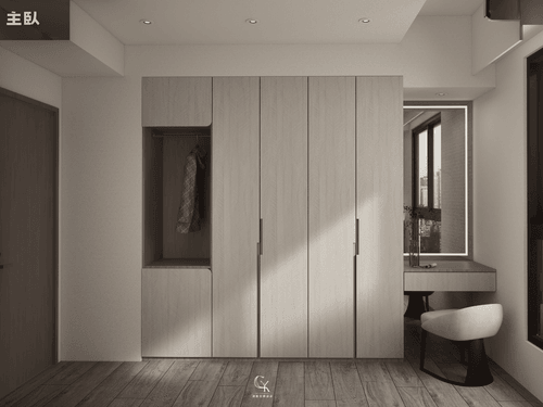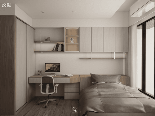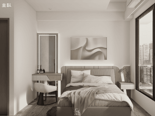 3.主臥的床頭使用延伸式設計,讓他不只是一塊靠背板,而是結合整體風格,也能成為臥式設計的重點牆,提升整體感。